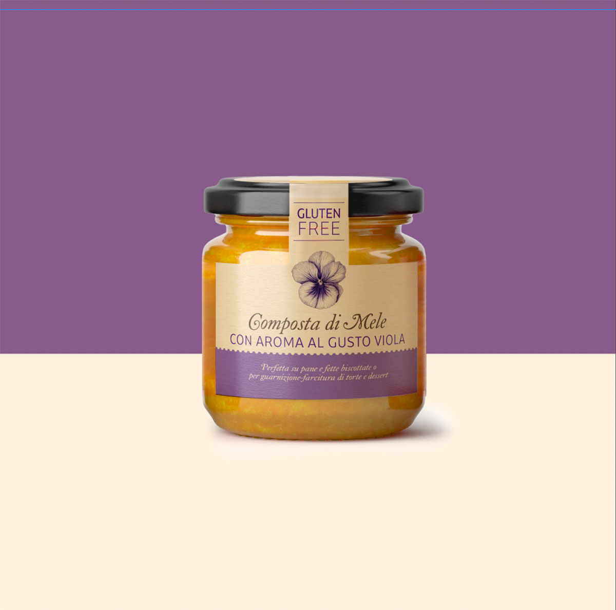 Ingredienti: mela 79%, zucchero di canna, succo di limone, aroma al gusto di viola 0,1%.